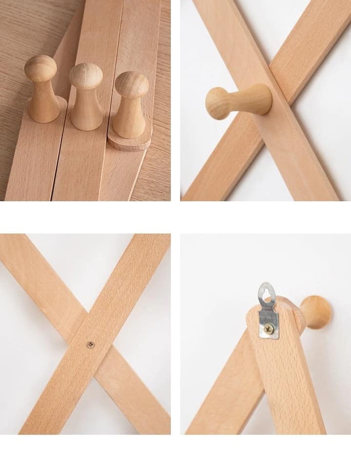 Ce porte manteau mural en losange est le complément parfait de toute maison ! Il est fait de lattes de bois qui sont en même temps pratiques et décoratifs. De plus, il se replie pour un rangement facile lorsqu'il n'est pas utilisé.